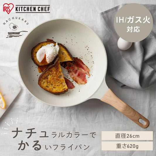 Lightweight Nonstick Frying Pan with Wood-Style Handle, IH & Gas Compatible