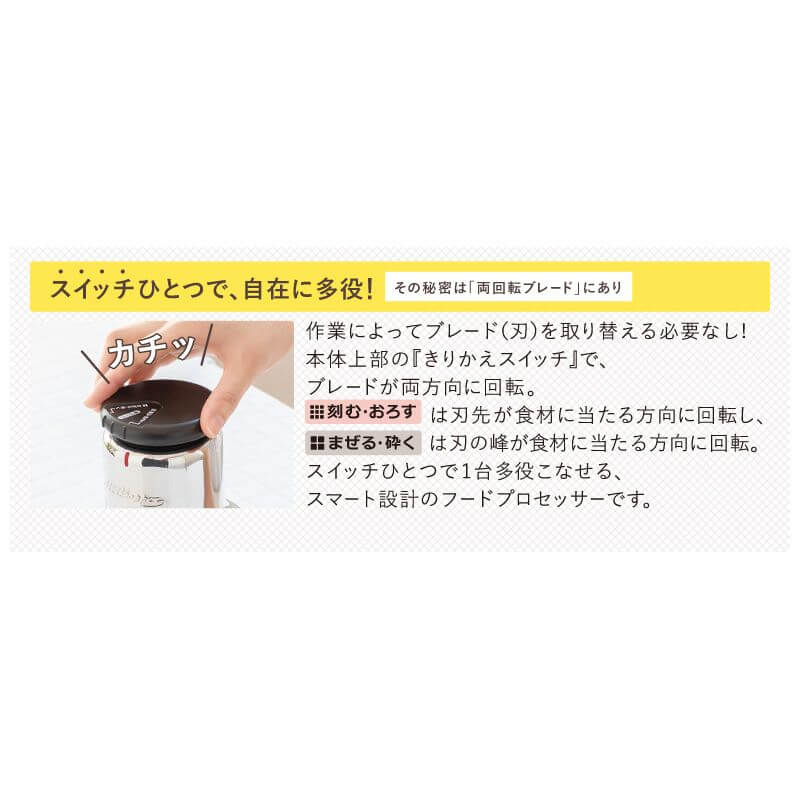 • The secret design of the "bi-directional rotating blades" means there's no need to change the blade based on the ingredient!