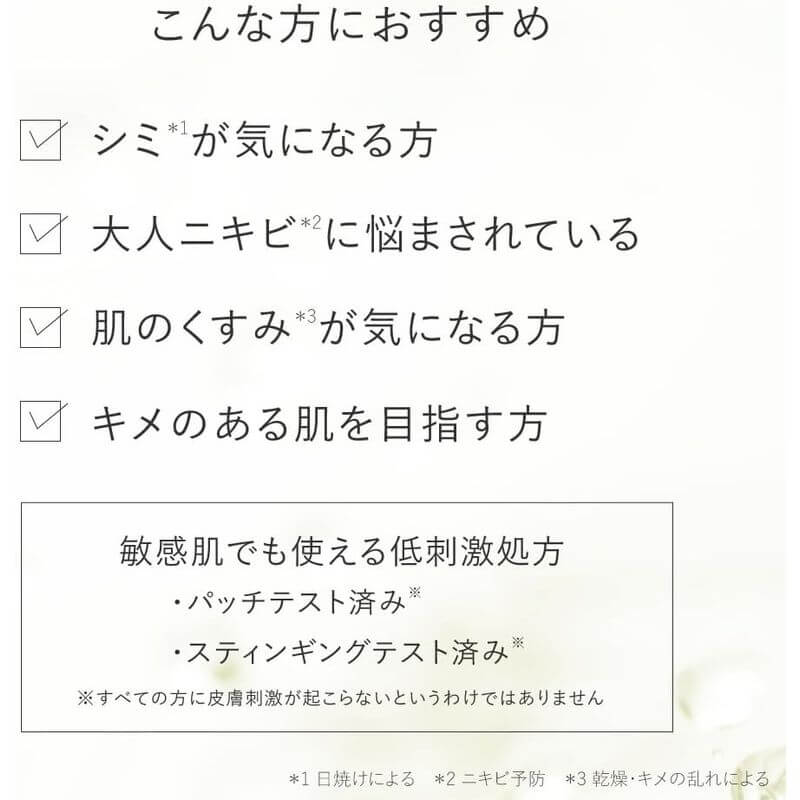 • Active Ingredients: Sodium Ascorbyl Phosphate (Vitamin C derivative), Monoammonium Glycyrrhizinate