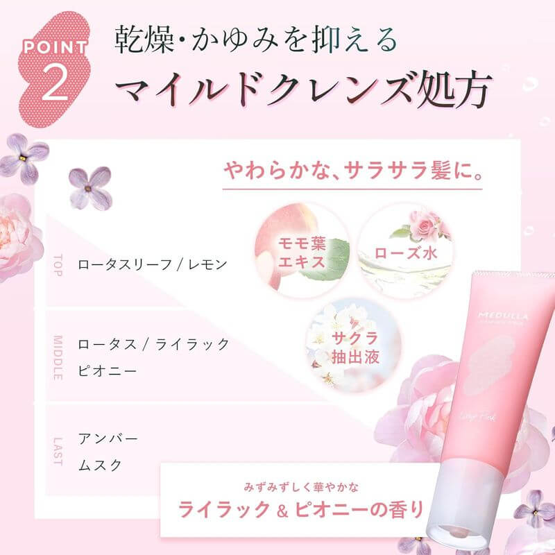 – Infused with peach leaf, rose, and cherry blossom leaf extracts to hydrate and calm