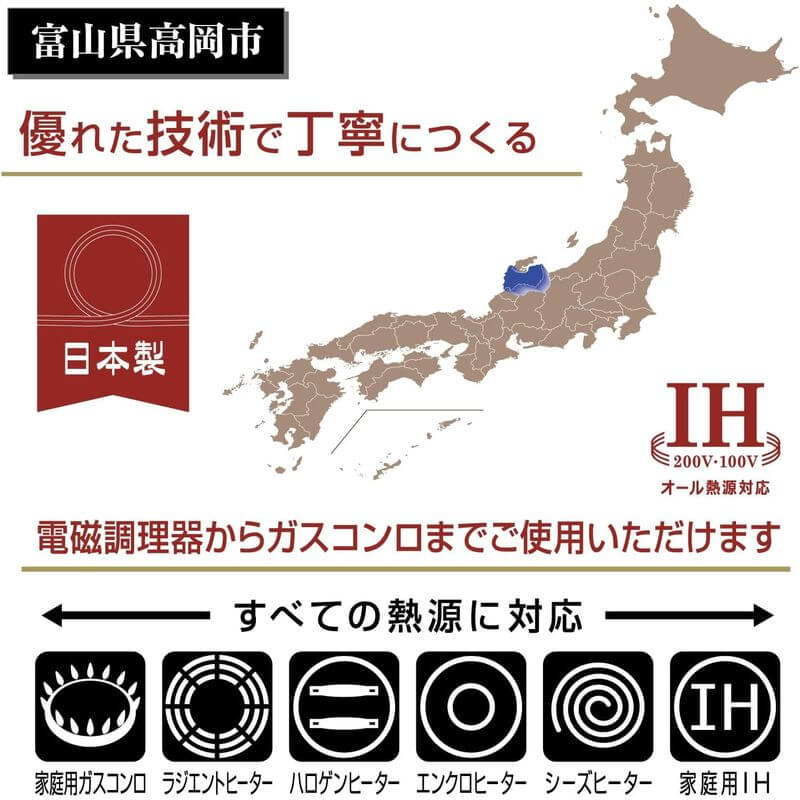 • Compatible Heat Sources: Gas stove, IH cooktop (100V / 200V), all types of stovetops