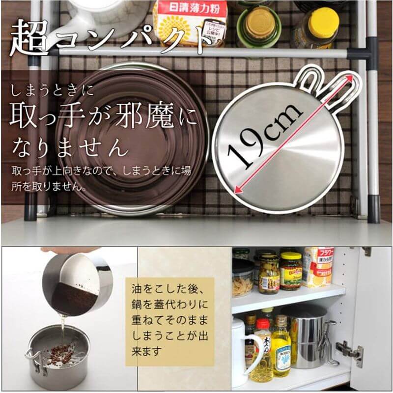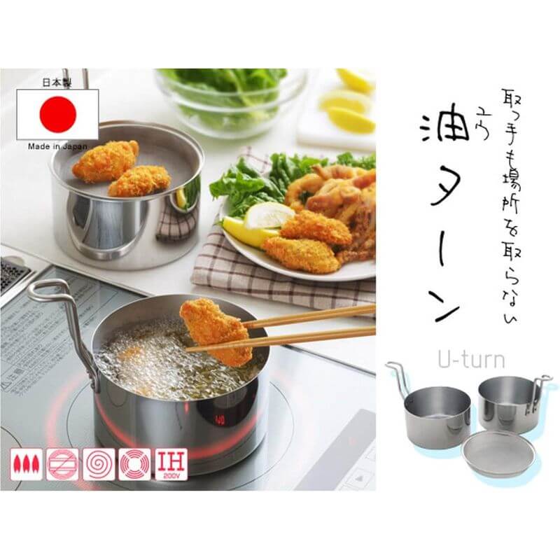 • 可雙向使用,濾油後鍋具可蓋合收納並當作油壺與天婦羅鍋交替使用